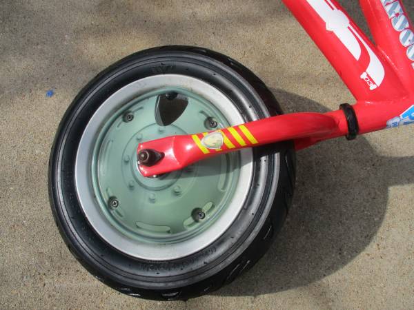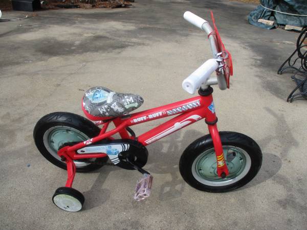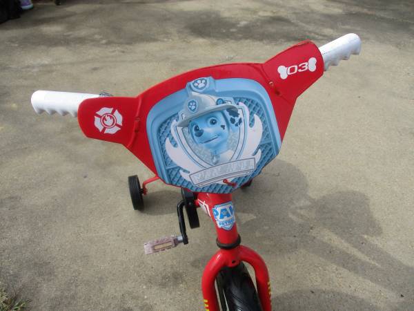 To find one as this is "VERY RARE"- It is very beautiful- Even the wheels has covers to protect the child's feet from getting in the spokes- Has 12 1/2x2 1/4 very nice tires with real valve stems to pump air easily--The label on the top tubing of the bike quotes "RUFF-RUFF RESCUE"- Another label quotes "PAW PATROL"--The chain guard label quotes" "MARSHALL" & The big front label quotes "MARSHALL"- All this is extra nice- The rear wheel is a coaster brake style- Selling as is- show contact info