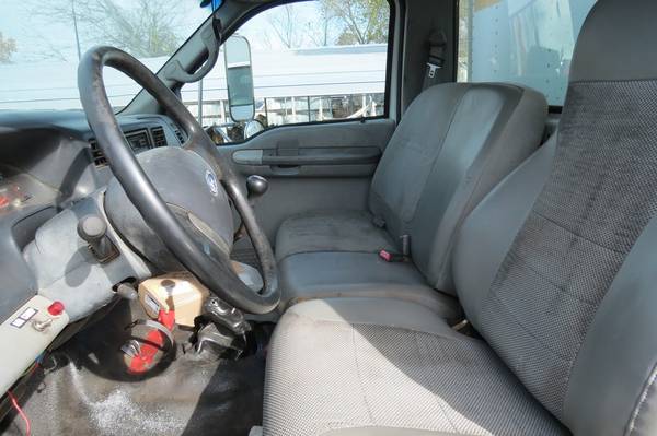 The exterior is white and has a 16-ft. box body with roll up door, outer storage compartments, and 22.5” dual rear wheels. The interior is gray and has A/C, cruise control, tilt steering wheel, interval wipers, and stereo. It is 2 wheel drive with manual transmission and has a diesel engine with 283,000 miles. #5200. Contact 318-267-8446 or 318-537-3024 for more details.