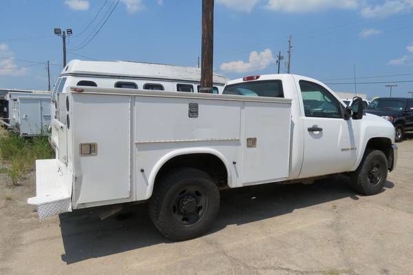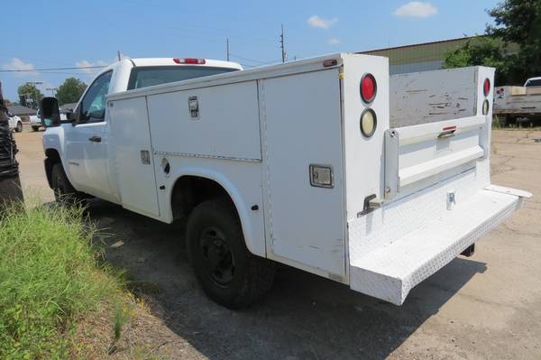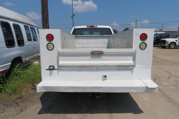 The exterior is white and has a Knapheide utility bed with storage compartments and 16” wheels. The interior is black & gray and has A/C, stereo, AUX port, cruise control, tilt steering wheel, and automatic transmission. It has a Vortec 6.0L V8 engine with 412,000 miles. #7612. Contact 318-267-8446 or 318-537-3024 for more details.