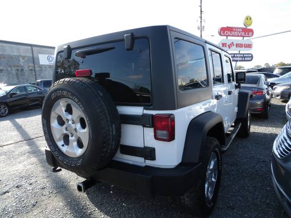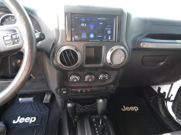The exterior is white and has a black hard top, running bars, tow package, and 18” wheels. The interior is black and has stereo, sound bar, cruise control, tilt steering wheel, interval wipers, and A/C. It is 4 wheel drive with automatic transmission and has a 3.8L V6 engine with 109,000 miles. #9883. Contact 318-267-8446 or 318-537-3024 for more details.