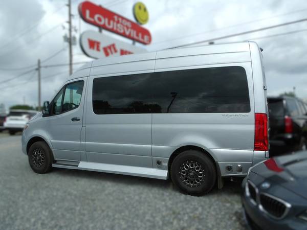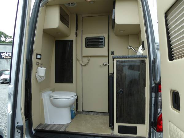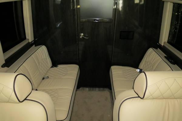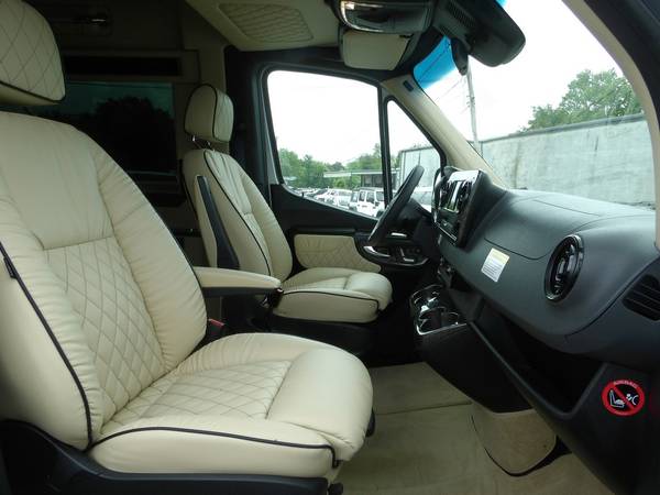 It is a luxury Ultimate Toys conversion that is silver with tan interior and has front & 2nd row bucket seats, 3rd row couch seats, leather seats, power seats, memory seat, power mirrors, power door locks, power windows, backup camera, navigation system, stereo, Bluetooth, cruise control, tilt steering wheel, interval wipers, push button start, and A/C with climate control. The rear section has a large television, surround sound audio system, and enclosed restroom area with toilet, sink, refrigerator, and microwave. Overall Length: 19.5’. WB: 144”. It has a 3.0L V6 turbo diesel engine with 10,000 miles. #0042. Contact 318-267-8446 or 318-537-3024 for more details.