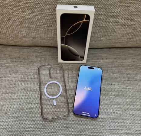 Apple iPhone 16 Pro Max 512GB Natural Titanium Unlocked Fully working order, with box and a charging cable. I’ll also include a clear case which is pictured. Only selling due to upgrade. Battery health is ver good 98% as pictured Has been fully reset ready to setup. Is in fully working order, no issues with anything. Has some small scratches on screen which I’ve pictured for you. Can only really see when the phone is locked. Doesn’t affect use at all. Any questions please ask!