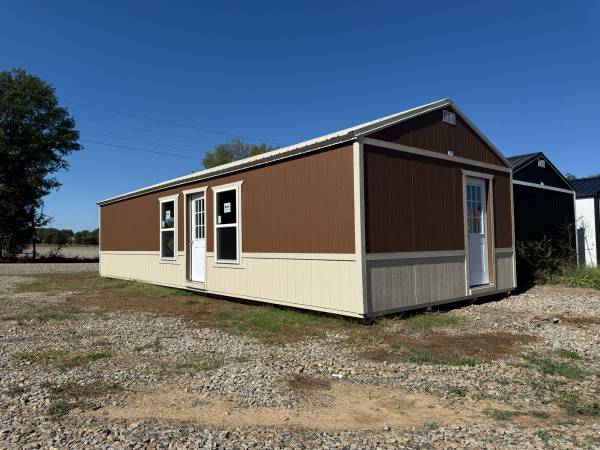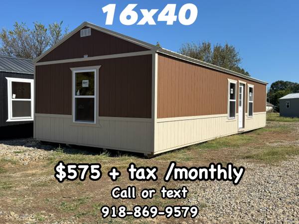 16x40 Shed -14% OFF $575 + tax Monthly (NO Credit Checks) Call or text Bo at # in picture Installed package⬇️ 🎨Custom Exterior Wainscot ▪️ Ceiling Insulation/Moisture Barrier ▪️ 3x5 Insulated...