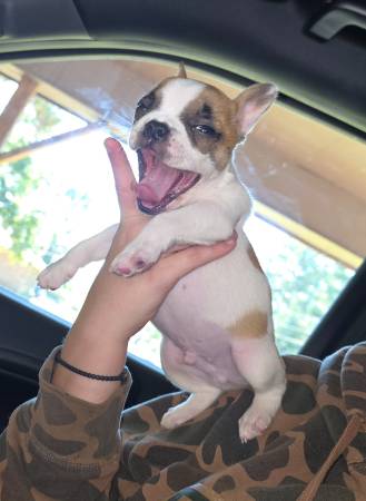 Male french bulldog 7 weeks old he has been wormed a few times but waiting for him to be old enough for his shots not registered