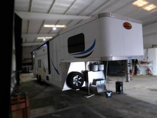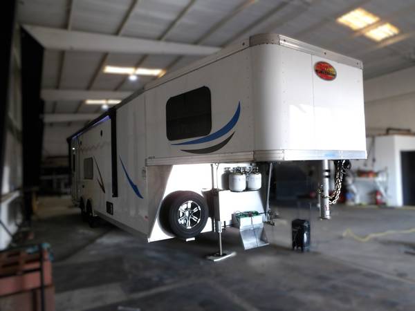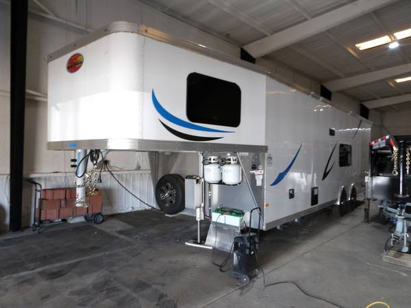 26’ gooseneck toy hauler, dual fold down sofas, loft bed, power drop down bed, full size shower, microwave, refrigerator/freezer, 2 burner cooktop, stereo, television, awning. #0561. Contact 318-267-8446 or 318-537-3024 for more details.